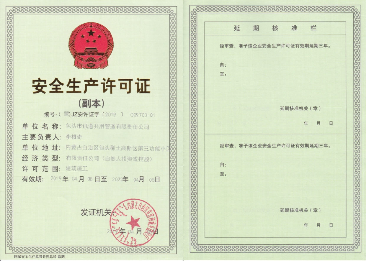 公司:包頭市訊通共用管道有限責(zé)任公司 手機(jī):0472-2209161 地址:包頭市稀土高新區(qū)一區(qū)希望路3號