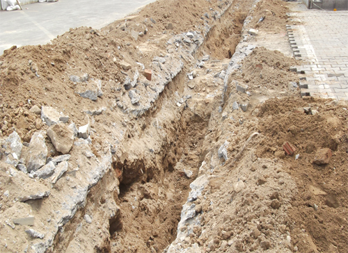 黃河大街(阿爾丁大街—萬青路)段擴修路施工開始,北側與通信管道相鄰、與各跨路路口通信管道交叉。